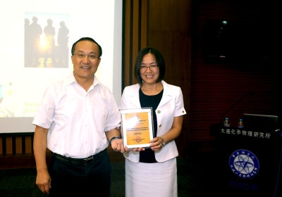 7月12日,中國(guó)科學(xué)院大連化學(xué)物理研究所優(yōu)秀校友系列報(bào)告第58講在能源基礎(chǔ)樓一樓會(huì)議室舉行,該所優(yōu)秀校友——美國(guó)W. R. Grace公司首席工程師舒玉瑛博士應(yīng)邀做了題為“Effect of Ionic Radius of Rare Earth on USY Zeolite in Fluid Catalytic Cracking: Fundamentals and Commercial Applications”的學(xué)術(shù)報(bào)告。所長(zhǎng)張濤院士主持報(bào)告會(huì),并為舒玉瑛頒發(fā)了優(yōu)秀校友紀(jì)念獎(jiǎng)牌。相關(guān)研究室(部)師生百余人聽(tīng)取了報(bào)告。