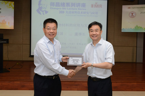 楊銳所長向王愛國董事長頒發(fā)師昌緒系列講座紀念牌