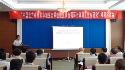 韓士杰從項目的科學目標和國家需求角度,系統(tǒng)闡述了項目的具體實施方案和要求。4位課題負責人分別從“植物—土壤—大氣碳氮耦合循環(huán)動力學研究”、“生態(tài)系統(tǒng)碳氮耦合循環(huán)生物學機制”、“生態(tài)系統(tǒng)碳源匯形成的機理及作用”、“森林、草地碳匯提升途徑”等4個方面對項目計劃研究任務的具體實施方案進行分解和匯報,項目骨干亦就如何有效執(zhí)行課題研究計劃、如何進行學科交叉等方面進行了廣泛交流和深入研討。項目專家組認真聽取了項目和各課題實施方案,對該項目的科學意義給予了高度評價,指出該項目實施方案科學具體,并就課題實施方案如何更好體現(xiàn)項目計劃任務的完整性提出了寶貴意見和建議。