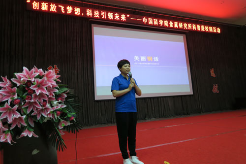 活動(dòng)中,金屬所任玲博士和楊煒沂博士分別作了題為“美麗‘銅’話” 和“神奇的凈水材料”的科普?qǐng)?bào)告。報(bào)告分別以含銅醫(yī)用金屬材料的獨(dú)特應(yīng)用和新型凈水材料在水處理中的作用為主要內(nèi)容,介紹了新型材料對(duì)人類(lèi)生活的影響,強(qiáng)調(diào)了科技創(chuàng)新的重要性。