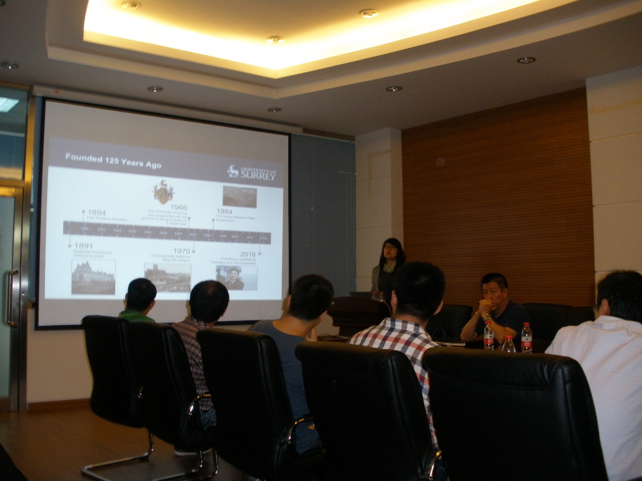 高揚(yáng)在報(bào)告中介紹了英國(guó)薩里大學(xué)的發(fā)展歷史,薩里空間中心在航天領(lǐng)域、空間機(jī)器人和航天技術(shù)應(yīng)用等方面取得的成就。她重點(diǎn)展示了薩里空間中心在空間機(jī)器人等領(lǐng)域的最新研究,如可重構(gòu)的體系、空間自主性、導(dǎo)航與控制、仿生機(jī)構(gòu)等。高揚(yáng)的報(bào)告圖文并茂、內(nèi)容豐富,與會(huì)人員就報(bào)告內(nèi)容進(jìn)行了交流。報(bào)告結(jié)束后,周船向高揚(yáng)頒發(fā)了“海外知名學(xué)者”聘書,并就后續(xù)的合作事宜進(jìn)行了探討。