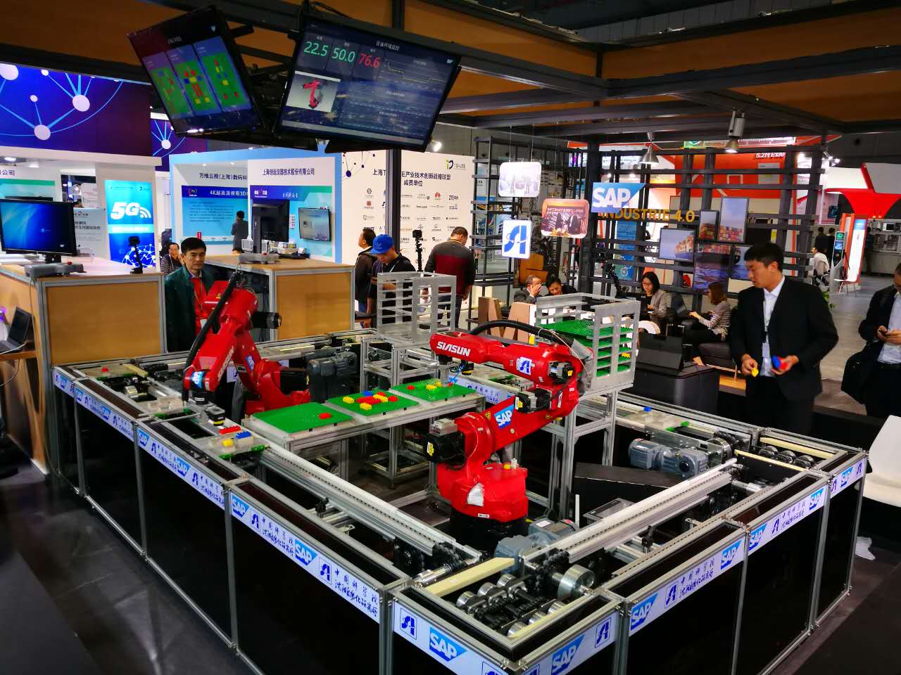 在展區(qū)中,沈陽(yáng)自動(dòng)化所展出的軟件定義的可重構(gòu)制造系統(tǒng)尤為引人注目。該系統(tǒng)主要包括沈陽(yáng)自動(dòng)化所的智能生產(chǎn)管控系統(tǒng)、工業(yè)物聯(lián)網(wǎng)和SAP公司的HANA平臺(tái)、ERP和MES軟件系統(tǒng),針對(duì)高度定制化產(chǎn)品的規(guī)?;a(chǎn)與傳統(tǒng)剛性制造模式的矛盾,提供了面向工業(yè)4.0的智能工廠整體解決方案。作為沈陽(yáng)自動(dòng)化所與SAP中國(guó)研究院的聯(lián)合創(chuàng)新項(xiàng)目,該系統(tǒng)以樂高積木產(chǎn)品的個(gè)性化定制設(shè)計(jì)、工藝流程自動(dòng)生成、機(jī)器人任務(wù)自主規(guī)劃為例,展示了消費(fèi)者高度個(gè)性化定制、設(shè)備和生產(chǎn)過程信息無線化感知、自主規(guī)劃生產(chǎn)計(jì)劃和任務(wù)、智能運(yùn)行管理、能源監(jiān)測(cè)與管理等功能。該系統(tǒng)實(shí)現(xiàn)了高度個(gè)性化定制、生產(chǎn)工藝流程和機(jī)器人任務(wù)在線自動(dòng)重組、設(shè)備預(yù)測(cè)性維護(hù)等創(chuàng)新模式,解決了高度個(gè)性化定制產(chǎn)品的規(guī)?;a(chǎn)與傳統(tǒng)的剛性、大批量制造模式之間的矛盾。
