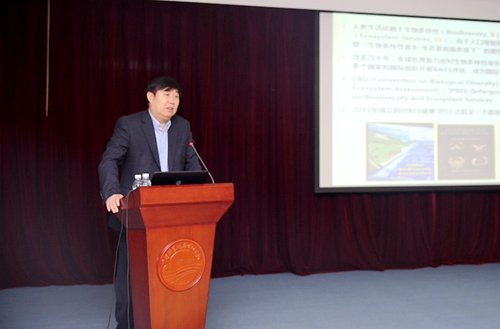 11月21日,海洋研究所2016年度學(xué)術(shù)月活動(dòng)第五場報(bào)告會(huì)舉行,中國科學(xué)院院士、發(fā)展中國家科學(xué)院院士傅伯杰應(yīng)邀做了題為“生物多樣性與生態(tài)系統(tǒng)服務(wù)評(píng)估指標(biāo)體系與方法”的學(xué)術(shù)報(bào)告。孫松所長主持報(bào)告會(huì),王凡書記、王輝副所長以及相關(guān)科研人員、研究生150余人參加了報(bào)告會(huì)。