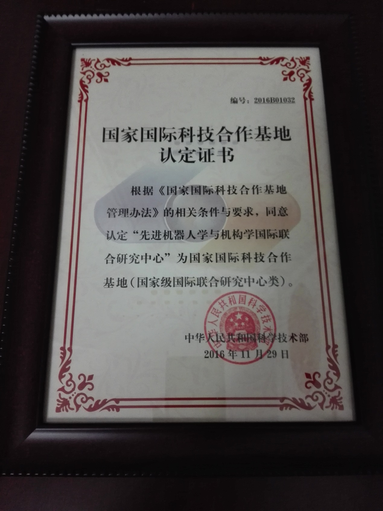 沈陽自動(dòng)化所獲批先進(jìn)機(jī)器人學(xué)與機(jī)構(gòu)學(xué)國際聯(lián)合研究中心 12月16日至17日,2016年國家國際科技合作基地工作座談會(huì)在杭州召開。會(huì)上同意認(rèn)定由中國科學(xué)院沈陽自動(dòng)化研究所申報(bào)的“先進(jìn)機(jī)器人學(xué)與機(jī)構(gòu)學(xué)國際聯(lián)合研究中心”為國家國際科技合作基地(國家級(jí)國際聯(lián)合研究中心類)。 會(huì)上,科技部副部長陰和俊對(duì)國家科技創(chuàng)新合作作重要講話??萍疾繃H合作司處長莊嘉宣讀了2016年新認(rèn)定的國際合作基地名單,其中包括國際創(chuàng)新園4家,國際聯(lián)合研究中心38家,國際技術(shù)轉(zhuǎn)移中心5家,示范型國際合作基地46家。沈陽自動(dòng)化所獲批“先進(jìn)機(jī)器人學(xué)與機(jī)構(gòu)學(xué)國際聯(lián)合研究中心”。 “先進(jìn)機(jī)器人學(xué)與機(jī)構(gòu)學(xué)國際聯(lián)合研究中心”由中國駐英國使館、遼寧省科技廳共同推薦,經(jīng)科技部組織的專家進(jìn)行初評(píng)、答辯,最終成功獲批?!跋冗M(jìn)機(jī)器人學(xué)與機(jī)構(gòu)學(xué)國際聯(lián)合研究中心”將通過引進(jìn)英國倫敦大學(xué)、愛丁堡機(jī)器人中心等科研院所在機(jī)器人研究方面的基礎(chǔ)理論研究成果,結(jié)合目前沈陽自動(dòng)化所在機(jī)器人關(guān)鍵技術(shù)攻關(guān)與原理樣機(jī)開發(fā)方面的國內(nèi)領(lǐng)先優(yōu)勢(shì),開展變胞機(jī)器人、醫(yī)療康復(fù)機(jī)器人以及控制理論方面的研究。國際聯(lián)合研究中心將提升我國機(jī)器人設(shè)計(jì)開發(fā)水平、完善和優(yōu)化現(xiàn)有機(jī)器人開發(fā)技術(shù),實(shí)現(xiàn)先進(jìn)機(jī)器人系統(tǒng)開發(fā)與實(shí)驗(yàn)研究。通過建立“先進(jìn)機(jī)器人學(xué)與機(jī)構(gòu)學(xué)國際聯(lián)合研究中心”的合作方式打通機(jī)器人整個(gè)研發(fā)鏈,提升我國機(jī)器人自主研發(fā)能力。 “先進(jìn)機(jī)器人學(xué)與機(jī)構(gòu)學(xué)國際聯(lián)合研究中心”的成立有利于提升我國在智能服務(wù)機(jī)器人領(lǐng)域的理論研究及工程應(yīng)用水平,促進(jìn)我國機(jī)器人學(xué)科技人才引進(jìn)和國際化培養(yǎng),為開展中英在機(jī)器人前沿技術(shù)領(lǐng)域的合作研究提供良好的平臺(tái)。(人教處) |