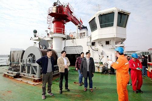 王輝書記等到碼頭接船
