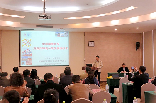 朱慶軍高級工程師首先介紹了中國工程院重大咨詢項目“我國腐蝕狀況及控制戰(zhàn)略研究”的項目背景和研究結(jié)果,以及國家海洋腐蝕防護(hù)工程技術(shù)研究中心的新技術(shù),建議將基礎(chǔ)設(shè)施及重大裝備腐蝕防護(hù)安全納入煙臺市長遠(yuǎn)規(guī)劃,提高防腐蝕意識。王建華助理研究員介紹了煙臺市腐蝕調(diào)查情況,李言濤研究員介紹了海洋腐蝕評價檢測技術(shù),兩家院士工作站也分別介紹了合作研發(fā)的防腐新材料。