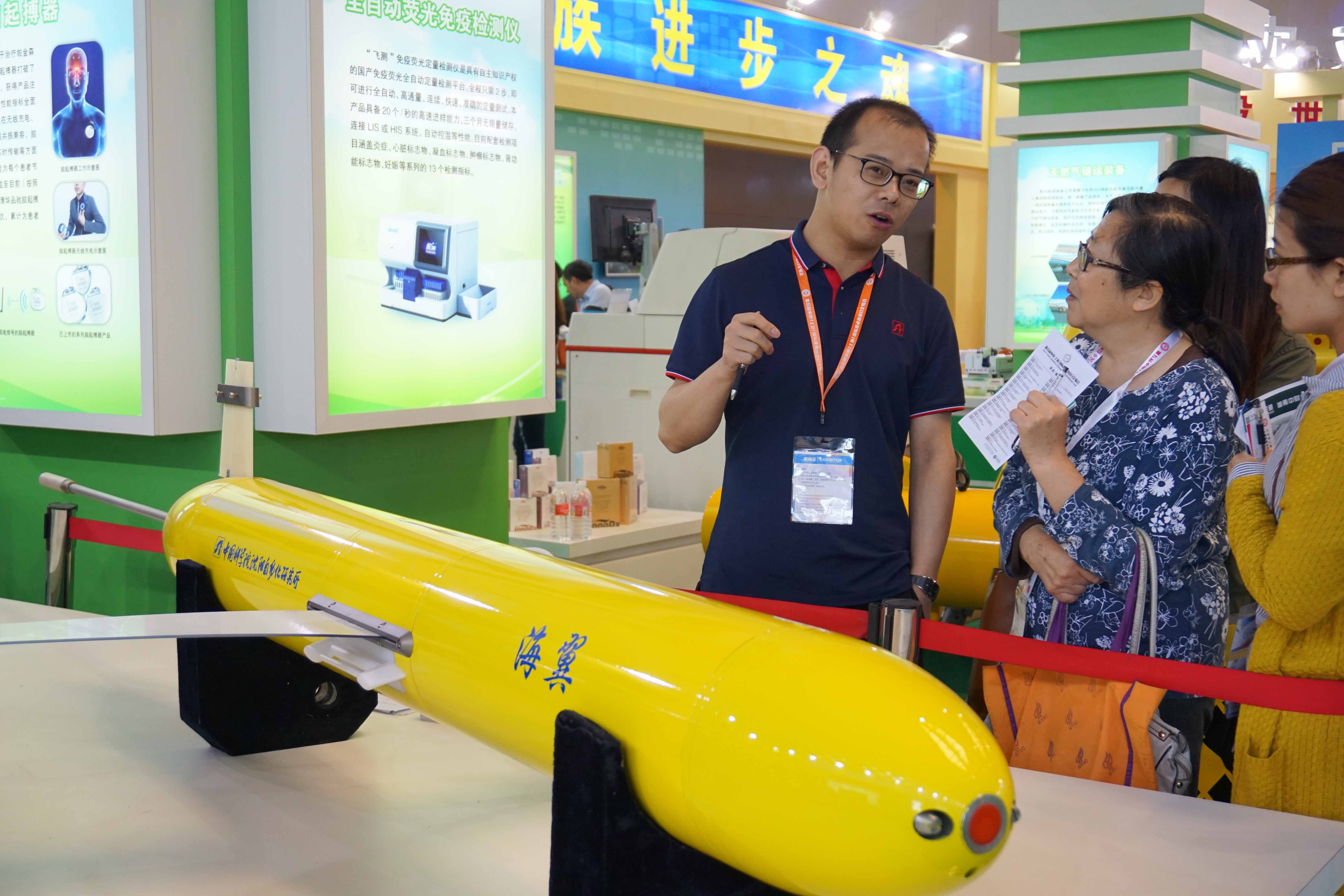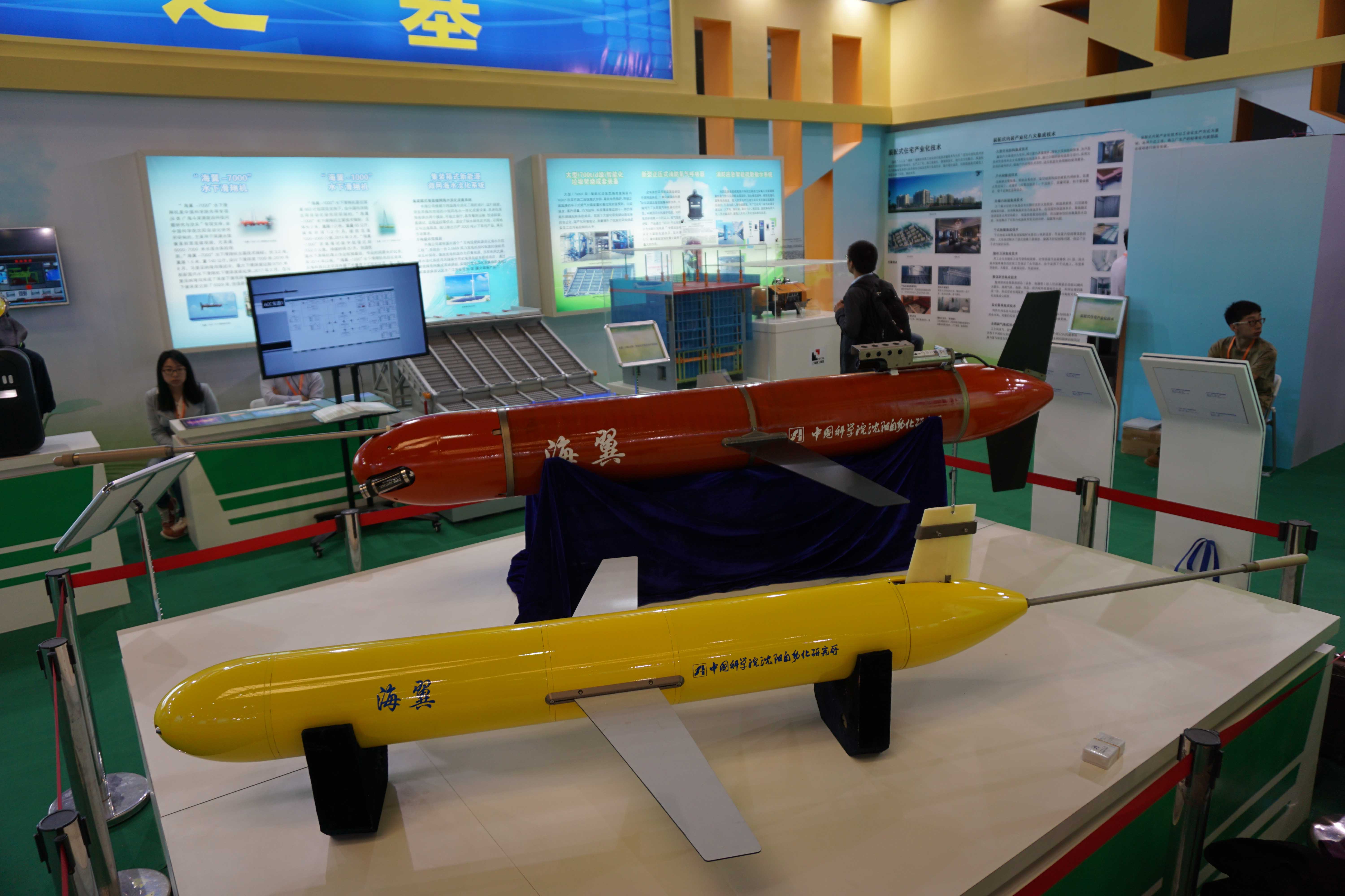 上交會上展出的“海翼”7000米級和1000米級水下滑翔機(jī)