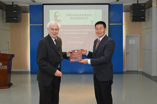 張健副所長(zhǎng)代表金屬所為Harald Rose教授頒發(fā)李薰講座獎(jiǎng)獎(jiǎng)牌