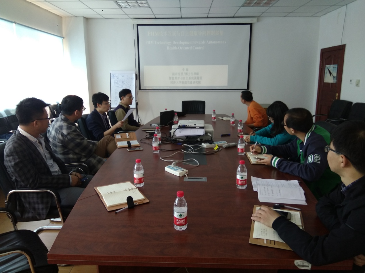 來(lái)訪期間,牛剛作了題為《故障預(yù)測(cè)與健康管理(PHM)技術(shù)發(fā)展與自主健康導(dǎo)向控制展望》的學(xué)術(shù)報(bào)告。他介紹了裝備健康管理技術(shù)的發(fā)展脈絡(luò)、PHM技術(shù)體系、設(shè)計(jì)與開發(fā)流程和代表性案例。他以永磁同步列車牽引系統(tǒng)和電空混合制動(dòng)系統(tǒng)為研究對(duì)象,介紹了基于PHM技術(shù)的自主健康導(dǎo)向控制發(fā)展方向。報(bào)告結(jié)束后,牛剛和與會(huì)人員就PHM在智能制造領(lǐng)域內(nèi)的應(yīng)用、設(shè)備預(yù)測(cè)性維護(hù)等問(wèn)題進(jìn)行了深入的交流。