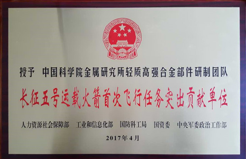 金屬所輕質(zhì)高強合金部件研制團(tuán)隊獲“長征五號運載火箭首次飛行任務(wù)突出貢獻(xiàn)單位”榮譽稱號,為科學(xué)院唯一獲此榮譽單位。參加長征五號運載火箭研制任務(wù)的輕質(zhì)高強合金部件研制團(tuán)隊包括:楊銳、徐磊研究員的“Ti-5Al-2.5Sn ELI粉末冶金氫泵葉輪”項目組,陳榮石、韓恩厚研究員的“高強鎂合金慣組支架”項目組,戎利建研究員、王本賢副研究員的“GH4169大口徑薄壁管材、鍛件”項目組。