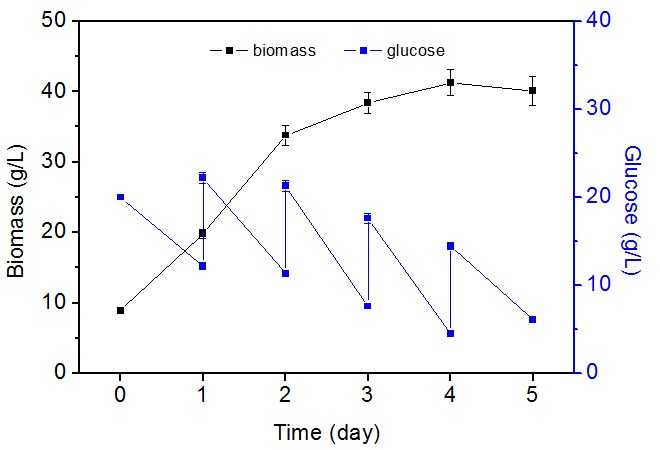 圖2 黃絲藻的流加異養(yǎng)發(fā)酵