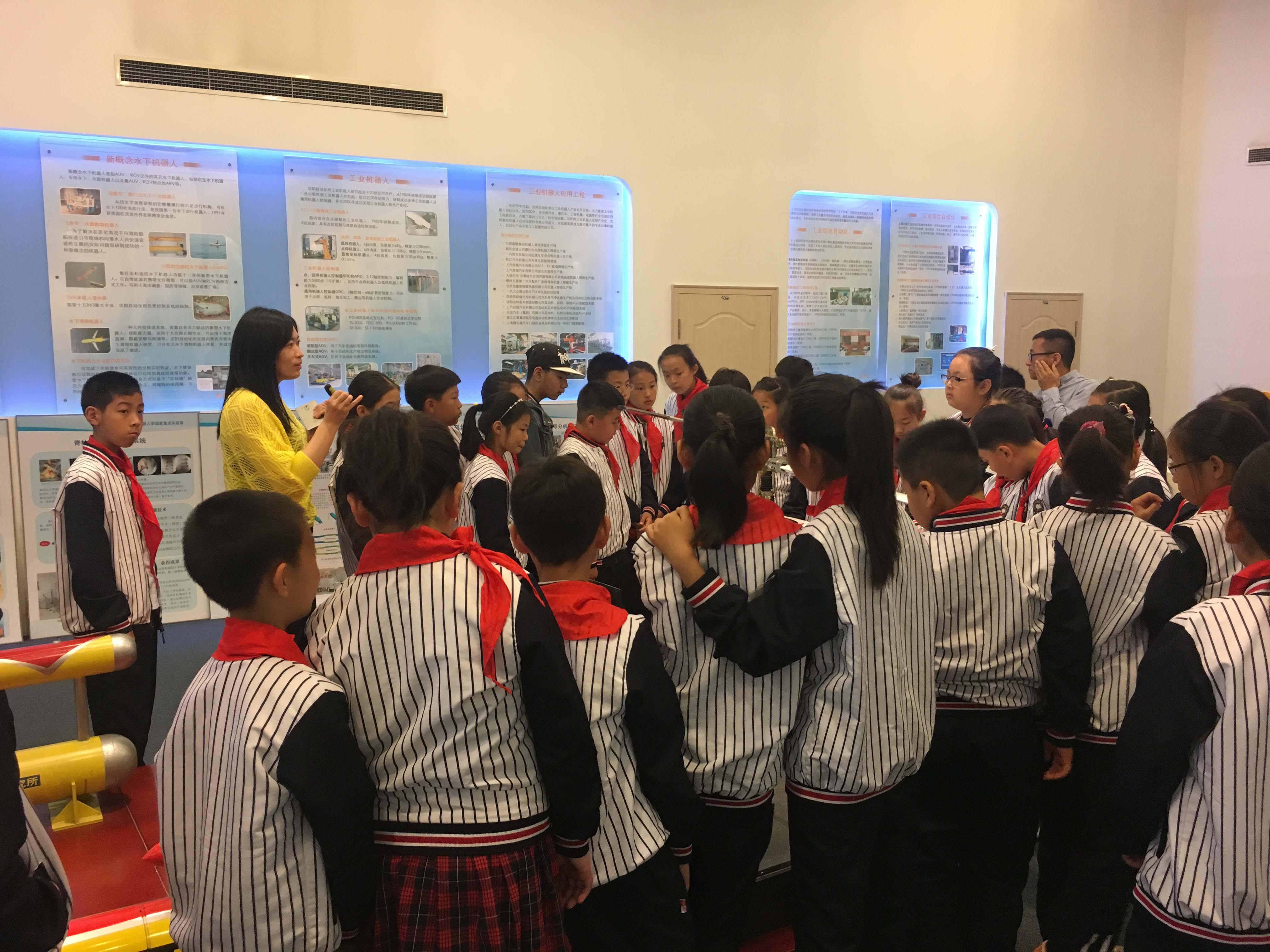在工作人員的帶領(lǐng)下,文萃小學(xué)師生分為三組,分別參觀了機(jī)器人學(xué)國(guó)家重點(diǎn)實(shí)驗(yàn)室、水下條件實(shí)驗(yàn)室和研究所科技成果展館。參觀過(guò)程中,科研人員為同學(xué)們耐心講解了廢墟搜救機(jī)器人、北極ARV、水下滑翔機(jī)、極地冰雪面移動(dòng)機(jī)器人、“靈豹”反恐防暴機(jī)器人、旋翼無(wú)人機(jī)等沈陽(yáng)自動(dòng)化所科研成果。水下條件實(shí)驗(yàn)室展出的“潛龍一號(hào)”、“潛龍二號(hào)”、“海斗號(hào)”等水下機(jī)器人也引起了同學(xué)們的濃厚興趣。此次來(lái)所參觀,是文萃小學(xué)師生們第一次與機(jī)器人近距離接觸,體驗(yàn)其中奧秘。學(xué)生們將講解人員團(tuán)團(tuán)圍住,認(rèn)真聆聽(tīng),并不時(shí)提問(wèn)互動(dòng),現(xiàn)場(chǎng)氣氛活躍。