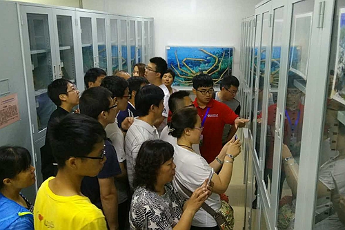 學(xué)生及家長參觀中科院海洋生物標(biāo)本館