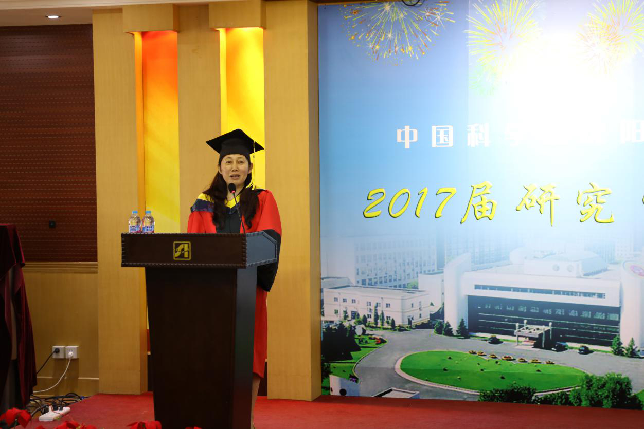 隨后,博士生許馳代表畢業(yè)生發(fā)言。他由衷地感謝為學生的成長辛苦耕耘的導師們,表達了對同學、朋友的不舍之情,以及即將踏入社會的激動而不平靜的心情。梁煒研究員作為導師代表發(fā)言,她對即將踏上新的人生征程的畢業(yè)生們提出了三點希望:立德、感恩、愛自己。