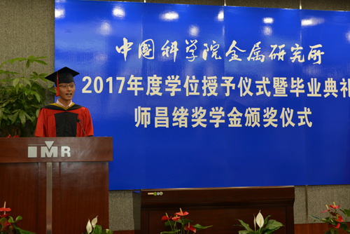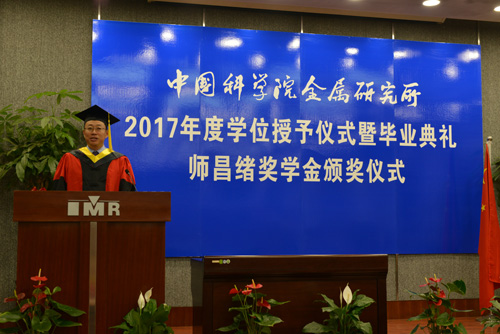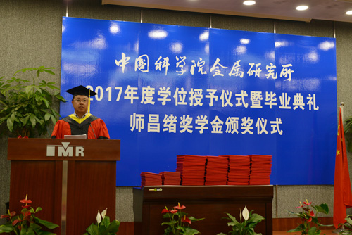 6月9日,金屬所2017年度學(xué)位授予儀式暨畢業(yè)典禮、師昌緒獎學(xué)金頒獎儀式在所北區(qū)報告廳隆重舉行。所學(xué)位評定委員會成員、導(dǎo)師代表、畢業(yè)生及其親友出席。畢業(yè)典禮由研究生部主任劉敏主持。