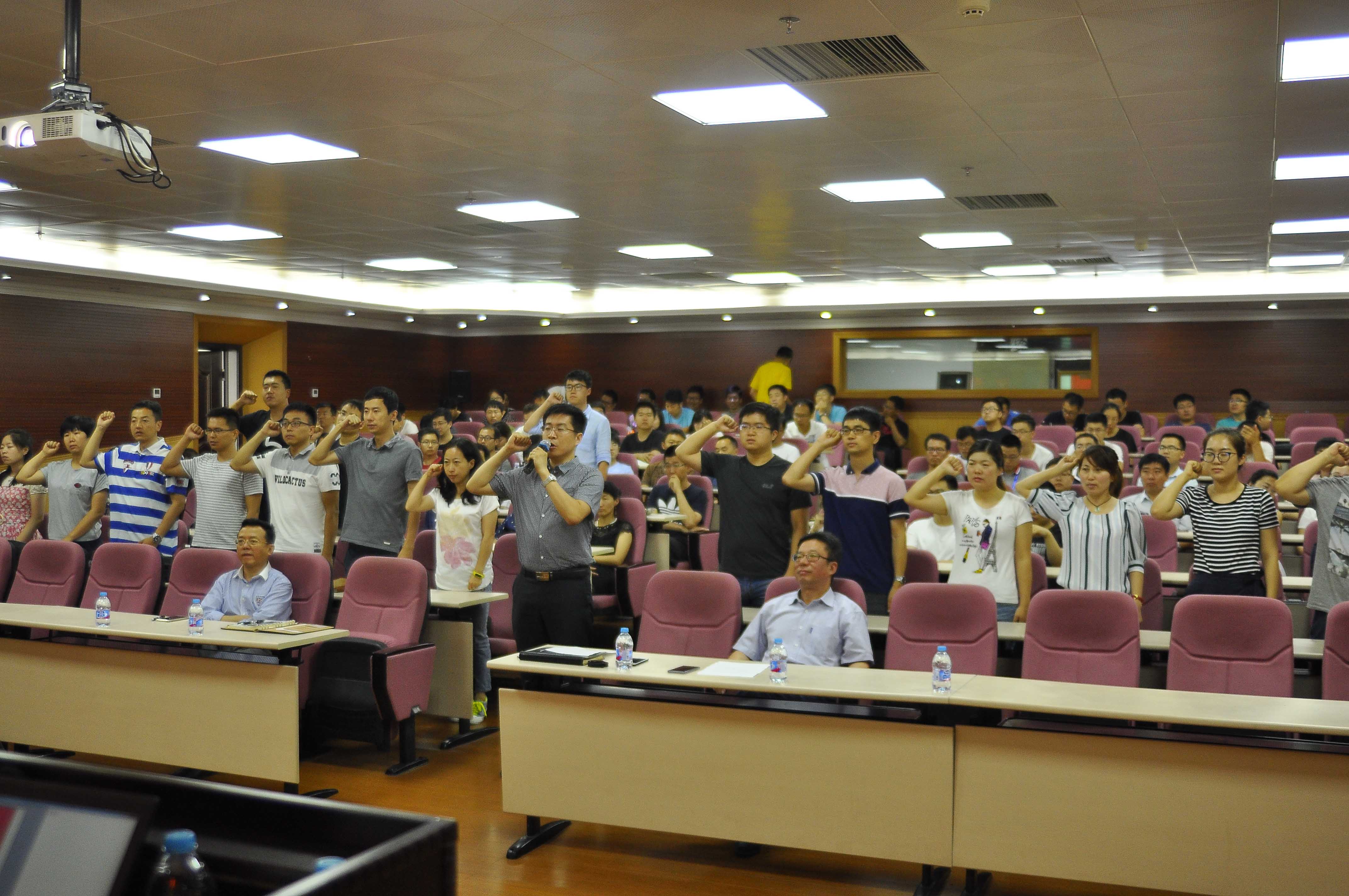 會(huì)上,梁波宣讀了2017年度新發(fā)展和轉(zhuǎn)正黨員名單。他鼓勵(lì)新發(fā)展和轉(zhuǎn)正黨員在各自崗位努力工作,踐行“四講四有”標(biāo)準(zhǔn),充分發(fā)揮黨員模范帶頭作用,以蔣新松院士為榜樣,追求真理,勇于開拓,肩負(fù)起新時(shí)期科研人的使命。隨后,黨辦主任王明輝帶領(lǐng)16名新發(fā)展黨員在黨旗下莊嚴(yán)宣誓。