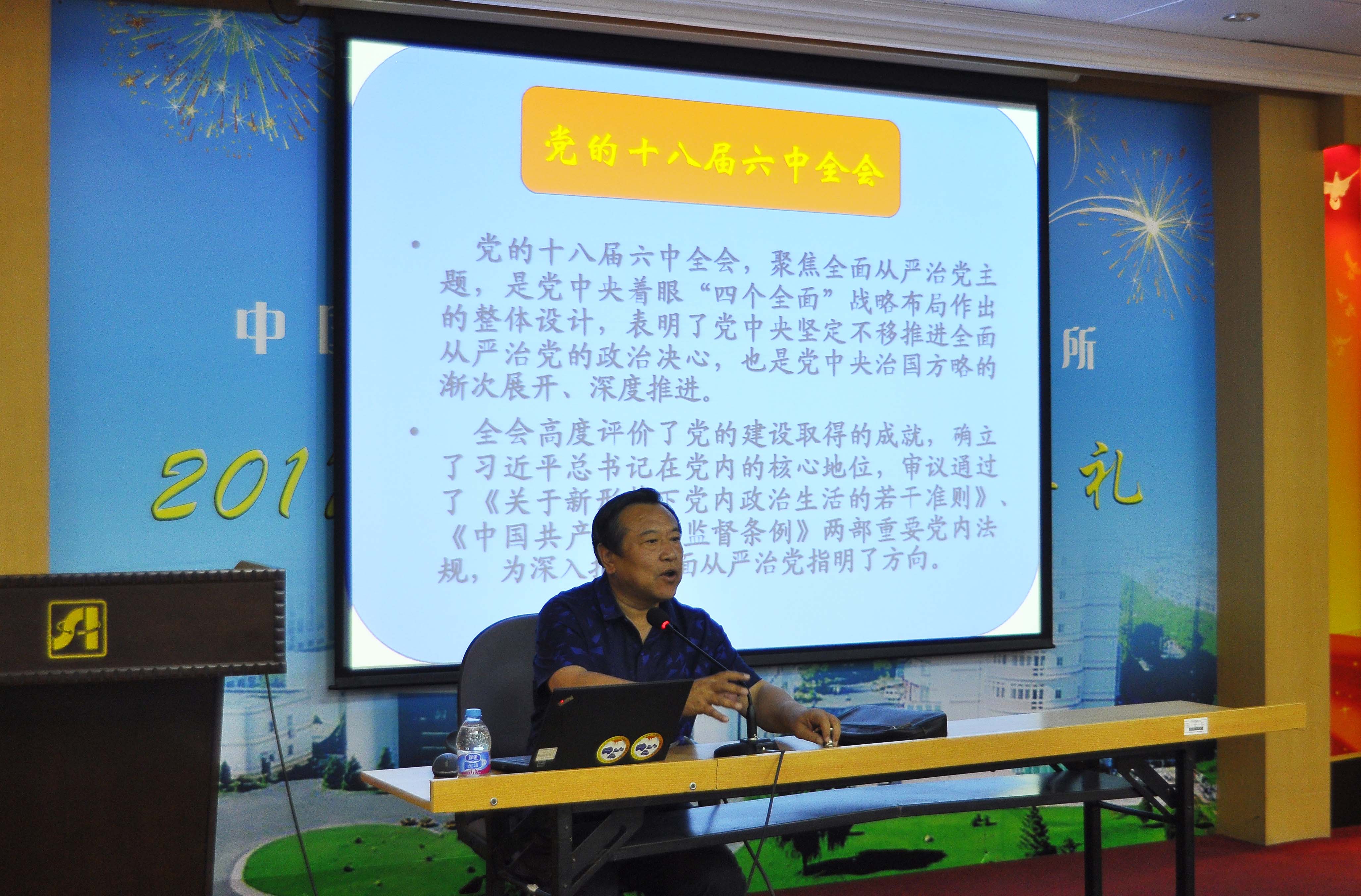 遼寧省委學(xué)校教授唐曉清以《學(xué)習(xí)十八屆六中全會(huì)精神,推動(dòng)全面從嚴(yán)治黨向縱深發(fā)展》為題深入解讀了十八屆六中全會(huì)精神。他從聚焦從嚴(yán)治黨講起,分析了確立習(xí)近平總書記為全黨核心的重要意義,論述了嚴(yán)肅政治生活、抓好黨員干部工作、加強(qiáng)紀(jì)律建設(shè)、強(qiáng)化權(quán)力監(jiān)督問責(zé)幾方面內(nèi)容。所黨委要求全體黨員同志進(jìn)一步深入了解黨的十八屆六中全會(huì)精神,使之成為推進(jìn)改革創(chuàng)新,踐行“率先行動(dòng)”的有力指導(dǎo)。(黨辦)