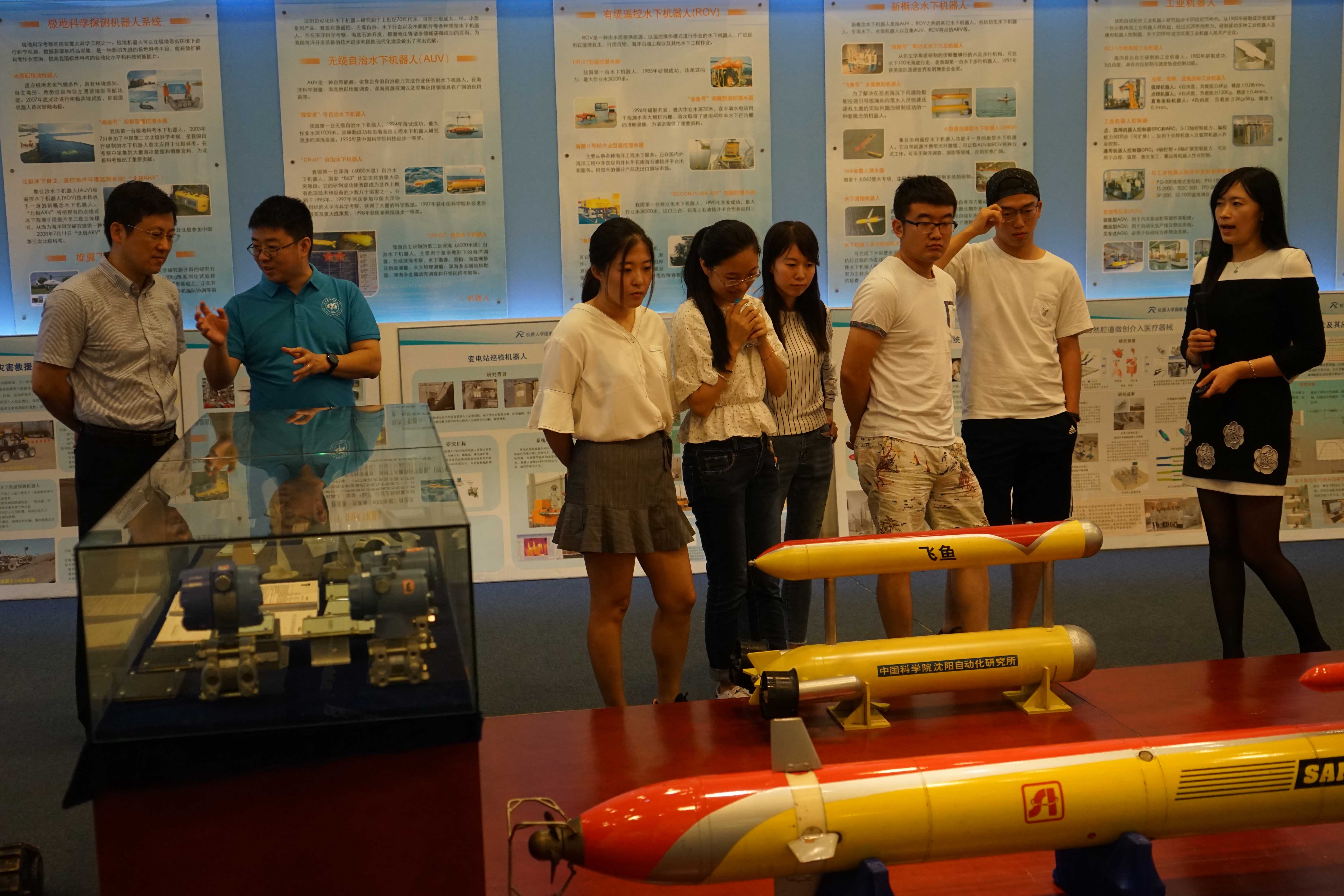 會(huì)后,北京航空航天大學(xué)師生一行參觀了沈陽自動(dòng)化所科技成果展館和水下條件實(shí)驗(yàn)室,與研究所科研人員進(jìn)行了現(xiàn)場(chǎng)交流,深入了解了沈陽自動(dòng)化所的發(fā)展歷史、研究領(lǐng)域和科研成果。同學(xué)們表示,希望今后有機(jī)會(huì)來沈陽自動(dòng)化所實(shí)習(xí)或工作,為國家機(jī)器人事業(yè)做出自己的貢獻(xiàn)。(人教處)
