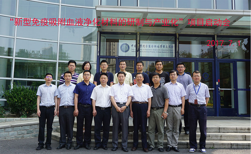 7月1日上午,由中國(guó)科學(xué)院大連化學(xué)物理研究所生物分離分析新材料與新技術(shù)研究組(1809組)和威高生命科技有限公司共同承擔(dān)的2017年度中國(guó)科學(xué)院 威高研究發(fā)展計(jì)劃創(chuàng)新團(tuán)隊(duì)項(xiàng)目“新型免疫吸附血液凈化材料的研制與產(chǎn)業(yè)化”啟動(dòng)會(huì)在生物樓報(bào)告廳召開(kāi)。