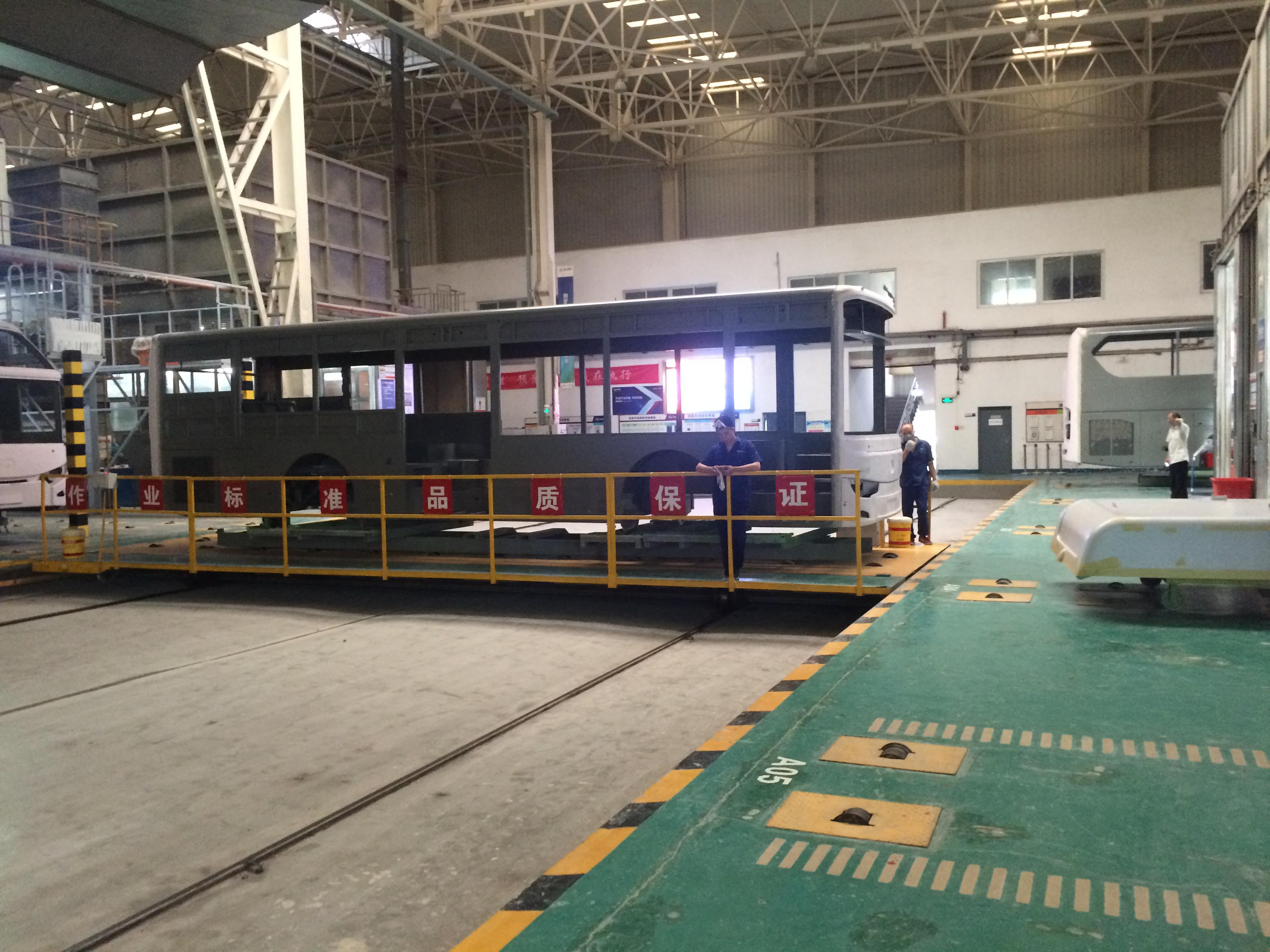 該項(xiàng)目采用雙軌道機(jī)器人布置方式,可實(shí)現(xiàn)總長(zhǎng)達(dá)14米的大客車車體中涂漆、膩?zhàn)拥母咝C(jī)器人打磨。為適應(yīng)大客車多品種、小批量的技術(shù)特點(diǎn),車體制造誤差大、生產(chǎn)節(jié)拍要求較快等技術(shù)難題,該項(xiàng)目綜合開發(fā)了客車車體打磨機(jī)器人離線編程軟件系統(tǒng)、基于恒力執(zhí)行器的機(jī)器人柔性控制、高精度車體快速定位技術(shù)以及基于線結(jié)構(gòu)光和力傳感的避障物檢測(cè)及避障處理等技術(shù)。該項(xiàng)目開發(fā)的機(jī)器人智能打磨系統(tǒng)可以適應(yīng)車身表面最大8cm的制造誤差,并實(shí)現(xiàn)打磨過(guò)程打磨頭的自動(dòng)姿態(tài)調(diào)整。該項(xiàng)目研發(fā)的離線編程系統(tǒng)可以實(shí)現(xiàn)大客車機(jī)器人專用打磨軌跡的快速生成,并滿足每臺(tái)車15分鐘左右的生產(chǎn)節(jié)拍。
