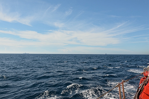 “科學(xué)”號(hào)上遠(yuǎn)眺“遼寧”號(hào)航母編隊(duì)