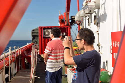 “從來(lái)都是聽(tīng)別人家的航母如何如何,現(xiàn)在終于在海上見(jiàn)到了我們國(guó)家自己的航母!”甲板部跟過(guò)多艘船出海多年的姜春明難掩內(nèi)心的激動(dòng)。“科學(xué)”下水近五年來(lái),在北起沖繩海槽、南至馬努斯海盆、西起南海西南部、東到東太平洋海隆的廣袤海域,開(kāi)展國(guó)家重大科技項(xiàng)目深遠(yuǎn)海綜合調(diào)查研究。茫茫大海上的船只是孤獨(dú)的,特別是“科學(xué)”號(hào)長(zhǎng)時(shí)間航行在深海大洋,能見(jiàn)到自己國(guó)家的船只特別是軍艦格外親切。“科學(xué)”號(hào)下水,我們有了自己的海洋科學(xué)綜合考察船,現(xiàn)在我們又有了自己的“遼寧”號(hào)航空母艦!中國(guó)夢(mèng),海洋夢(mèng),夢(mèng)想在現(xiàn)實(shí)的努力中一步步實(shí)現(xiàn)。感謝我們生在這樣一個(gè)偉大的時(shí)代,能夠參與到實(shí)現(xiàn)中華民族偉大復(fù)興中國(guó)夢(mèng)的偉大進(jìn)程中并作出自己的貢獻(xiàn)。