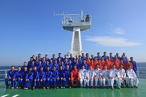 全體船隊員在“科學”號前甲板合影