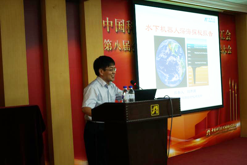 隨后,沈陽自動化所劉開周研究員為大學(xué)生們作了題為《水下機(jī)器人深海探秘》的報告。他在報告中介紹了國內(nèi)外AUV發(fā)展的歷史與現(xiàn)狀,重點介紹了沈陽自動化所參與研制的“蛟龍?zhí)枴笨刂葡到y(tǒng),分享了參加深潛試驗的親身經(jīng)歷和海試取得的科研成果。報告后,他與大學(xué)生們進(jìn)行了問答交流。
