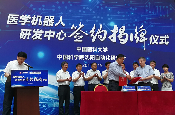 7月19日,中國科學(xué)院沈陽自動化研究所、中國醫(yī)科大學(xué)在沈陽舉行簽約揭牌儀式,雙方合作共建醫(yī)學(xué)機器人研發(fā)中心。