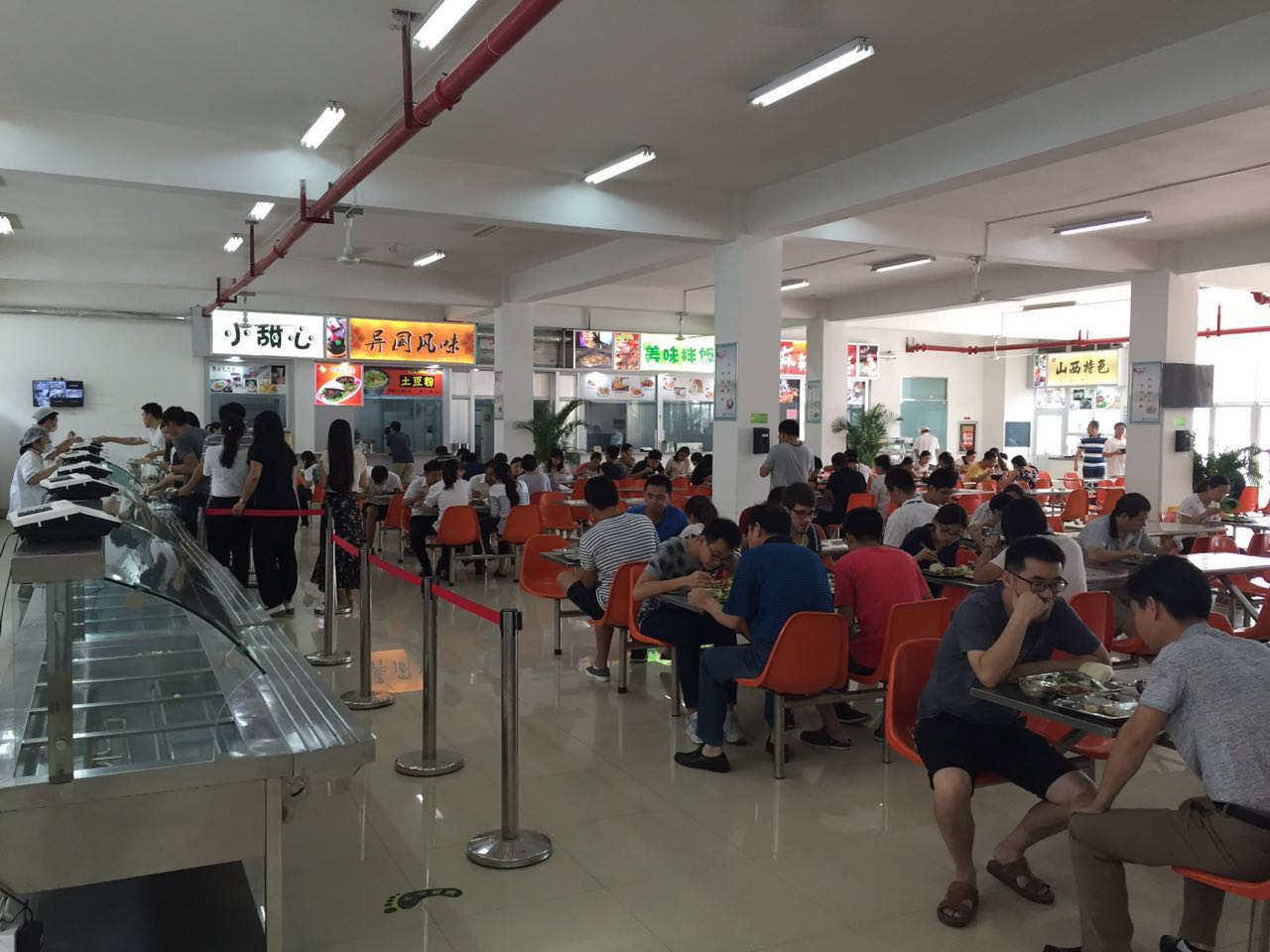 整改后的餐廳內(nèi)部裝飾煥然一新,為就餐者提供整潔、溫馨、愉悅的就餐場(chǎng)所。新增特色窗口推出山西面食,有多種口味的刀削面、涼面和炒面;麻辣食族窗口在原有麻辣燙的基礎(chǔ)上,新增了麻辣香鍋,為愛吃辣的人們多了一份選擇;美味拌飯窗口新增了數(shù)十種葷素搭配俱全的蓋澆飯;還有特色的砂鍋米線和土豆粉;“小甜心”西點(diǎn)窗口每天烘培數(shù)十種不同口味的面包和點(diǎn)心,每天都有新鮮的蛋撻出爐。餐廳在新菜品推出前舉辦了菜品試吃會(huì),邀請(qǐng)所內(nèi)的老師和學(xué)生前來品嘗,使飯菜口味更加符合職工、學(xué)生的需求。