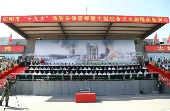 當(dāng)日上午9點(diǎn)30分,沈陽市“十九大”消防安保誓師暨大型綜合滅火救援實(shí)戰(zhàn)演習(xí)在消防訓(xùn)練基地隆重舉行。沈陽市政府各委辦局,全省消防部隊,各區(qū)、縣(市)政府領(lǐng)導(dǎo),市、區(qū)兩級公安機(jī)關(guān)、警種支隊領(lǐng)導(dǎo)和社會各界代表共1700多人參加了活動。835名消防官兵,158臺各種消防車輛投入演習(xí)。
