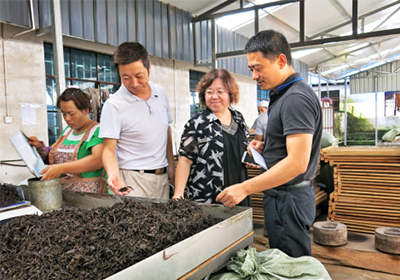 揭牌/簽約儀式前,李瑞峰還陪同參會嘉賓參觀考察了普洱知味茶廠生產(chǎn)車間和荒田村“綠色農(nóng)業(yè)示范基地”茶山現(xiàn)場,與車間工人和茶農(nóng)針對茶葉病蟲、茶葉加工、農(nóng)藥殘留及檢測方法等方面進(jìn)行了細(xì)致和深入的交流。