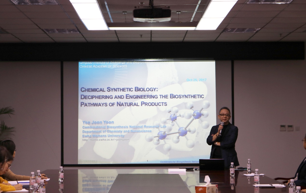 10月25日,韓國梨花女子大學(xué)Yeo Joon Yoon教授受邀參加青島能源所主辦的合成生物學(xué)系列學(xué)術(shù)講座。Yeo Joon Yoon教授任韓國梨花女子大學(xué)化學(xué)與納米科學(xué)學(xué)院教授,J. Microbiol. Biotechnol.、Appl. Microbiol. Biotechnol.和Biomed Res. Int.雜志編委,Nat. Prod. Rep.雜志顧問委員會委員。研究方向主要是通過異源表達(dá)、組合生物合成以及代謝工程等方法高效合成結(jié)構(gòu)多樣的活性天然產(chǎn)物。Yeo Joon Yoon教授在生物合成及合成生物學(xué)領(lǐng)域的研究具有很深的造詣。