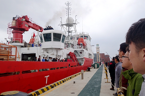 11月16日下午,“科學”號圓滿完成國家自然科學基金委2017年西太平洋開放共享航次科考任務,順利返回青島母港。海洋所所長助理程培周、刁新源以及綜合處、科研處、資產處、科考船運管中心等部門負責同志到碼頭迎接。