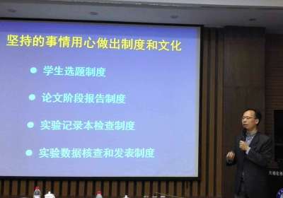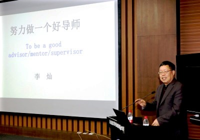 隨后,李燦做了“努力做一名好導(dǎo)師”的專題報(bào)告。李燦從傳統(tǒng)文化的導(dǎo)師思想境界談到近代的玻恩與哥本哈根學(xué)派,結(jié)合自身培養(yǎng)百余名博士的經(jīng)歷,對(duì)新導(dǎo)師提出三點(diǎn)建議,即科學(xué)選題、組會(huì)制度和因材施教。李燦強(qiáng)調(diào)科學(xué)選題是導(dǎo)師的第一要?jiǎng)?wù),選題應(yīng)注重創(chuàng)新性、前瞻性與可行性;完善的組會(huì)討論制度有利于營(yíng)造良好的學(xué)術(shù)氛圍,培養(yǎng)研究生的科學(xué)精神;導(dǎo)師應(yīng)注重因材施教,加強(qiáng)對(duì)學(xué)生的啟發(fā)引導(dǎo),李燦提出“導(dǎo)師最大的失誤是將天資優(yōu)越的學(xué)生培養(yǎng)成泛泛之輩”。他希望研究生導(dǎo)師能夠和學(xué)生相伴成長(zhǎng),將學(xué)生引導(dǎo)好,與學(xué)生共同學(xué)習(xí),共同提高。