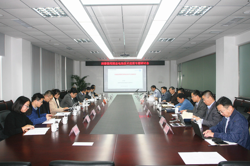 呂雪峰副所長對專家的到來表示歡迎,并簡要介紹了研究所的情況。崔光磊研究員做了深潛器用固態(tài)電池技術(shù)進(jìn)展的匯報,從國內(nèi)外固態(tài)鋰電池開發(fā)情況,固態(tài)鋰電池開發(fā)技術(shù)路線及固態(tài)鋰電池規(guī)?;尚行裕瑖鴥?nèi)外技術(shù)路線的分析對比,深潛動力電源存在的問題,應(yīng)用現(xiàn)狀及解決方案等方面介紹了深潛器用固態(tài)電池技術(shù)的進(jìn)展。經(jīng)過多年的努力,崔光磊研究員團(tuán)隊采取代次研發(fā)策略,通過“剛?cè)岵木酆衔镫娊赓|(zhì)技術(shù)”“多層復(fù)合膜熱壓技術(shù)”“鋰金屬表面修飾及界面鈍化技術(shù)”等自主核心技術(shù),攻克“固固界面的離子傳導(dǎo)調(diào)控”、“固態(tài)電解質(zhì)制備”、“鋰金屬界面穩(wěn)定性”、“超薄金屬鋰片的制備與加工”等安全高能量密度固態(tài)鋰電池產(chǎn)品產(chǎn)業(yè)化的四大關(guān)鍵技術(shù)難點,形成了剛?cè)岵募夹g(shù)路線,第一代產(chǎn)品已經(jīng)成功應(yīng)用于“蛟龍?zhí)枴敝懫?,正在持續(xù)開發(fā)第二代、第三代產(chǎn)品,并積極推進(jìn)產(chǎn)業(yè)化應(yīng)用。李俊高級工程師系統(tǒng)介紹了固態(tài)鋰電池在深潛器上使用的情況,對固態(tài)鋰電池的使用效果給予了充分的肯定。