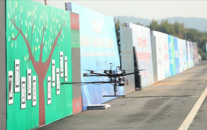 此次比賽主要面向“精準農(nóng)業(yè)”,對虛擬的果樹病蟲害進行視覺識別與農(nóng)藥噴灑,要求無人機自主起飛并降落,識別顯示屏上代表病蟲害的數(shù)字,并對噴繪區(qū)域相應數(shù)碼框進行精確噴繪,主要考驗無人機自主起降、視覺識別、精確定位、補藥續(xù)噴等能力。本屆賽事吸引了來自北京理工大學、南京航空航天大學在內(nèi)的19支隊伍參加。沈陽自動化所“翔鷹”無人機憑借平穩(wěn)的起降、精準的定位、穩(wěn)定的飛行、精確的噴繪以第一名的成績進入決賽,并最終獲得該項目冠軍。