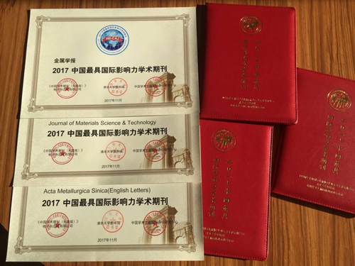 11月23日至24日,同方知網(wǎng)(北京)技術(shù)有限公司(CNKI)在北京召開了2017中國(guó)學(xué)術(shù)期刊未來論壇。論壇期間,CNKI發(fā)布了175種2017年度“中國(guó)最具國(guó)際影響力學(xué)術(shù)期刊”和175種“中國(guó)國(guó)際影響力優(yōu)秀學(xué)術(shù)期刊”。金屬所承辦的三本期刊《材料科學(xué)技術(shù)英文版》(簡(jiǎn)稱JMST)、《金屬學(xué)報(bào)》、《金屬學(xué)報(bào)》(英文版,簡(jiǎn)稱AMSE)均入選2017“中國(guó)最具國(guó)際影響力學(xué)術(shù)期刊” (簡(jiǎn)稱TOP5期刊),分列第19位、第137位、第154位。