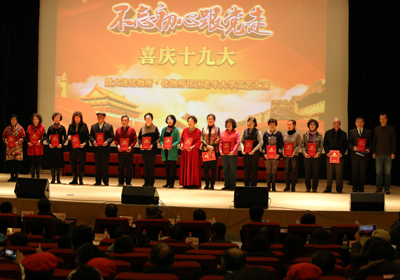 演出前,播放了電子作品展。圍繞十九大主題的一幅幅攝影、繪畫(huà)、書(shū)法電子作品凝聚著作者對(duì)黨的熱愛(ài)、對(duì)新生活的理解、對(duì)祖國(guó)美好未來(lái)的深切期盼。演出期間還表彰了老年大學(xué)優(yōu)秀教師、優(yōu)秀班干部、優(yōu)秀學(xué)員。