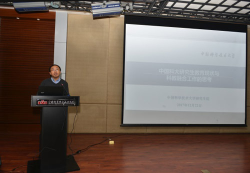 中科大研究生院吳恒安副院長(zhǎng)作了題為“中國(guó)科大研究生教育現(xiàn)狀與科教融合工作的思考”的報(bào)告。他介紹了學(xué)??平倘诤系淖钚戮瘢瑘?bào)告從學(xué)科建設(shè)、招生選拔、教學(xué)培養(yǎng)、獎(jiǎng)助體系、學(xué)位工作、導(dǎo)師隊(duì)伍、培養(yǎng)質(zhì)量、科教融合學(xué)院建設(shè)與發(fā)展八個(gè)方面具體展開(kāi)。報(bào)告內(nèi)容豐富、詳實(shí),在科教融合實(shí)施過(guò)程中具有很強(qiáng)的指導(dǎo)意義。吳院長(zhǎng)還就一些管理細(xì)節(jié)例如對(duì)學(xué)校制定的學(xué)位申請(qǐng)成果新要求等進(jìn)行了詳細(xì)解讀。報(bào)告的最后,吳院長(zhǎng)熱忱歡迎金屬所各位導(dǎo)師蒞臨中科大,共商事業(yè)、共謀發(fā)展,將科教融合學(xué)院越辦越好!