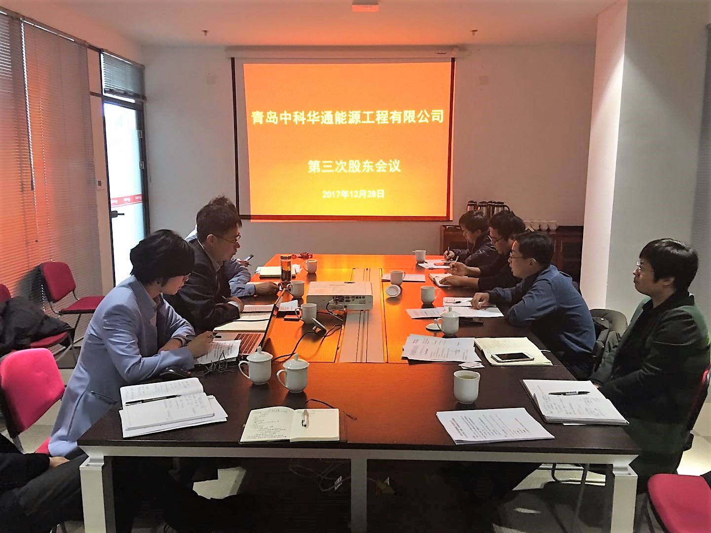 12月28日上午,青島中科華通能源工程有限公司(簡稱中科華通)在華通集團(tuán)703會議室召開了第三次股東會,完成了第二屆董事會換屆選舉事宜,并召開第一次董事會會議。研究所黨委副書記許輝、知識產(chǎn)權(quán)與成果轉(zhuǎn)化處處長陳驍作為研究所股東代表;青島華通集團(tuán)副總經(jīng)理曾慶軍、青島華睿能源公司總經(jīng)理趙巖立作為華通能源公司股東代表、中科華通董事;中科華通副董事長郭榮波、監(jiān)事姜暉、總工程師羅生軍出席了會議。公司高級管理人員、研究所產(chǎn)業(yè)化主管等人員列席會議。