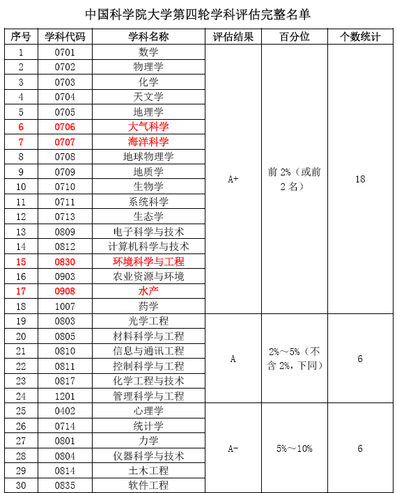 近日,教育部學(xué)位與研究生教育發(fā)展中心公布了全國第四輪學(xué)科評估結(jié)果。中國科學(xué)院大學(xué)共有48個一級學(xué)科參評,其中30個學(xué)科被評為優(yōu)秀(A類),18個學(xué)科被評為A+,6個被評為A,6個被評為A-,總成績僅次于北大、清華,名列全國第三。