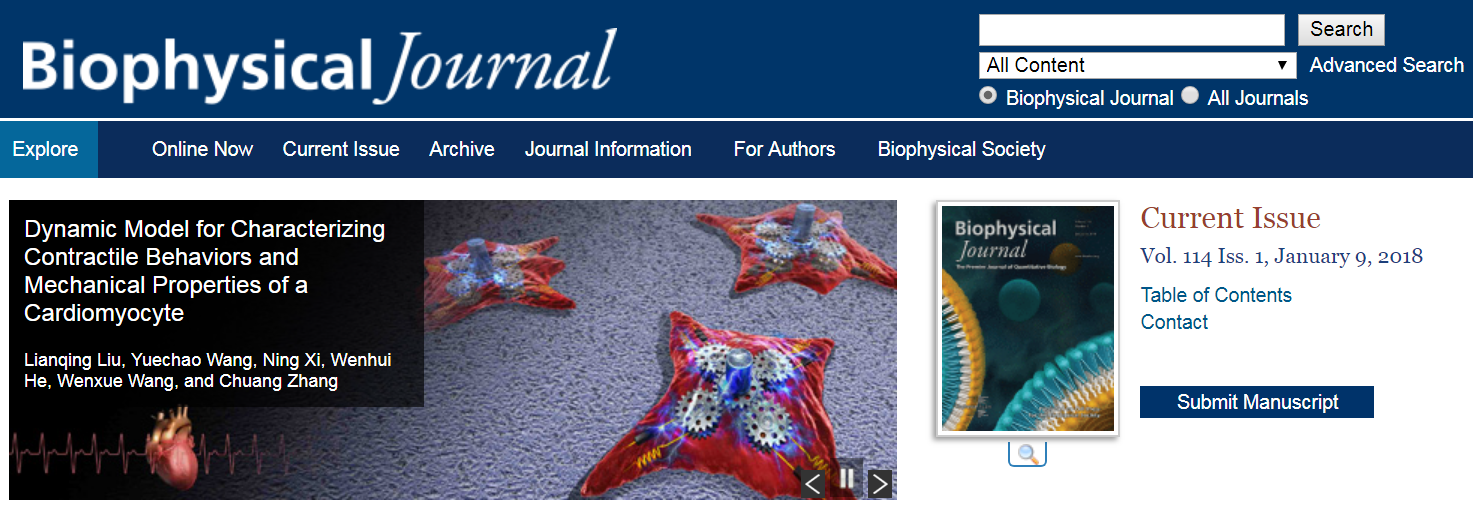 近日,國際著名學術(shù)雜志Biophysical Journal(中科院二區(qū)Top類期刊)以亮點論文的形式發(fā)表了中國科學院沈陽自動化研究所微納米課題組在類生命機器人領域取得的最新成果(Dynamic Model for Characterizing Contractile Behaviors and Mechanical Properties of a Cardiomyocyte, Biophysical Journal, Vol.114(1), pp.188-200, 2018. DOI: http://dx.doi.org/10.1016/j.bpj.2017.11.002, http://www.cell.com/biophysj/home)。