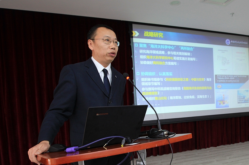 實驗海洋生物學、海洋生態(tài)與環(huán)境科學、海洋環(huán)流與波動、海洋地質(zhì)與環(huán)境、海洋環(huán)境腐蝕與生物污損5個中科院重點實驗室以及海洋生物分類與系統(tǒng)演化實驗室、深海研究中心負責人分別匯報了研究室2017年的工作進展,深入分析了困難和不足,提出了2018年的研究室發(fā)展思路。