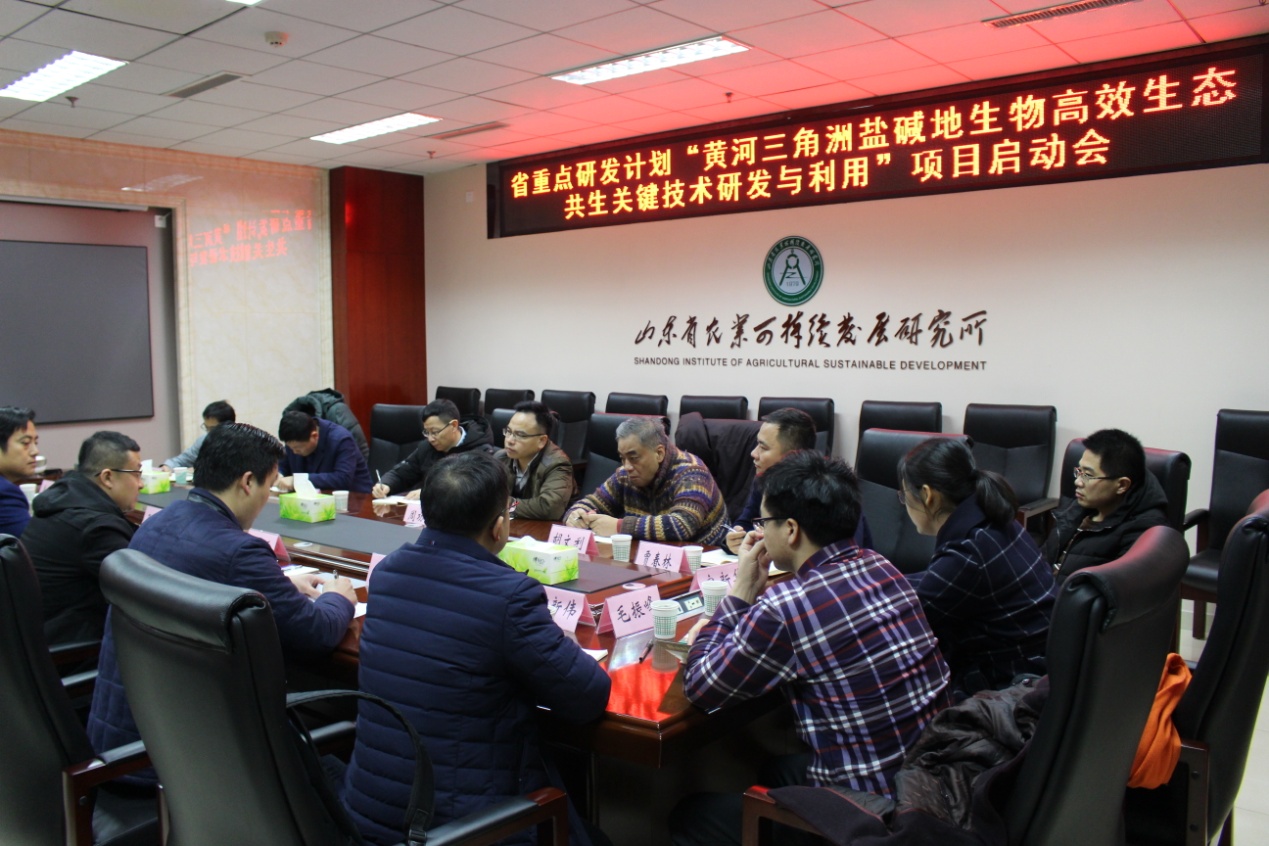 1月26日上午,由青島能源所植物代謝工程團隊研究員周功克主持的山東省重點研發(fā)計劃“黃河三角洲鹽堿地生物高效生態(tài)共生關(guān)鍵技術(shù)研發(fā)與利用示范”項目啟動會在濟南召開。山東省科技廳農(nóng)村處副處長劉赤兵、山東省農(nóng)業(yè)科學(xué)院科研處副處長趙海軍和山東省農(nóng)業(yè)可持續(xù)發(fā)展研究所書記王祥峰等出席了會議。來自中科院青島能源所、山東省農(nóng)業(yè)可持續(xù)發(fā)展研究所、山東省農(nóng)科院畜牧獸醫(yī)研究所、山東理工大學(xué)、青島農(nóng)業(yè)大學(xué)、濰坊豐瑞農(nóng)業(yè)科技有限公司、昌邑潤德生態(tài)纖維有限公司等項目承擔(dān)單位的20余名科研人員參加了會議。