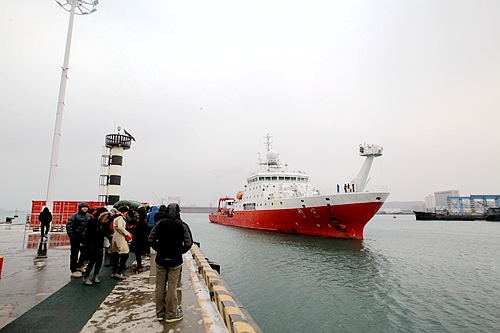 “科學”號緩緩駛?cè)肽父?/span>
