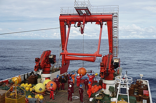 科考人員進行潛標布放作業(yè)