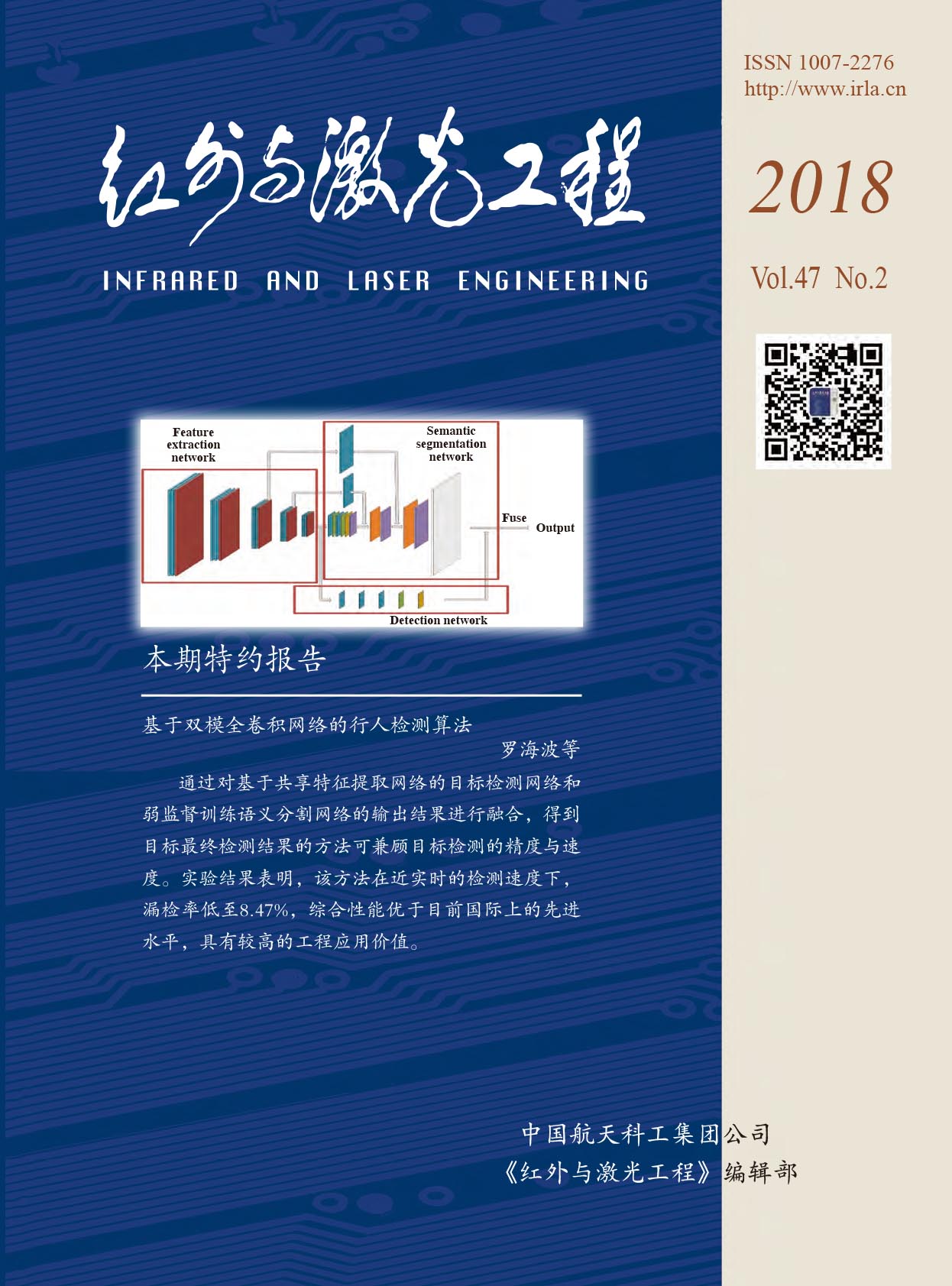 近日,中國科學(xué)院光電信息處理重點(diǎn)實(shí)驗(yàn)室的科研成果“基于雙模全卷積網(wǎng)絡(luò)的行人檢測算法”獲《紅外與激光工程》2018年第2期封面刊載。