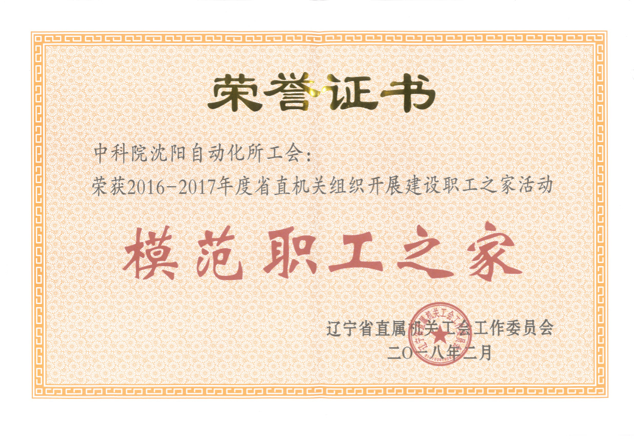 近日,遼寧省直機關(guān)工會工委召開2018年度工作會議,會上對獲得2016—2017年度模范職工之家等先進(jìn)單位進(jìn)行了頒獎,中國科學(xué)院沈陽自動化研究所工會榮獲2016—2017年度遼寧省直屬機關(guān)“模范職工之家”稱號。