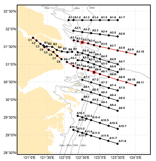 “長(zhǎng)江口科學(xué)考察實(shí)驗(yàn)研究”春季共享航次站位圖